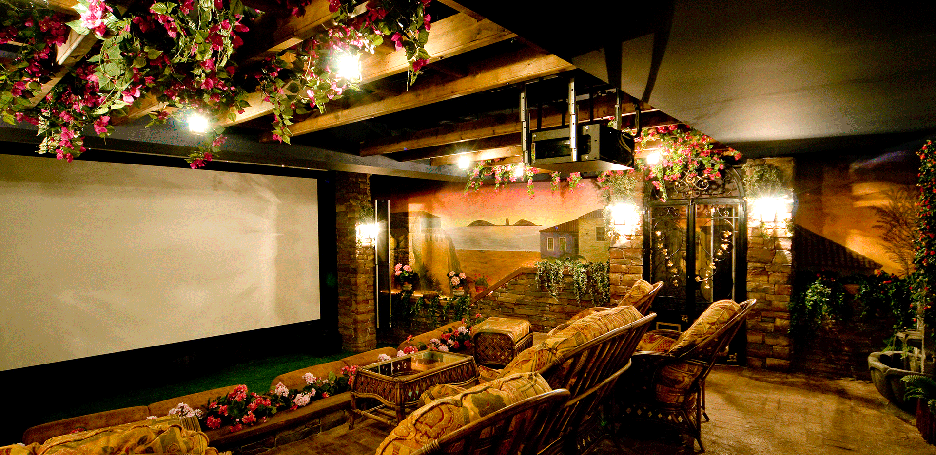 Η ιστορία της κατασκευής του ξεκίνησε με το όραμα ενός φανατικού λάτρη της 7ης τέχνης να μετατρέψει έναν ανεκμετάλλευτο υπόγειο αποθηκευτικό χώρο στην κατοικία του, στον Άλιμο Αττικής, σε κινηματογράφο. Ο ιδιοκτήτης επέλεξε την εταιρεία μας, όχι μόνο για την τεχνική μας επάρκεια σε όλα τα στάδια του έργου, αλλά και επειδή κατανοήσαμε τη βαθιά νοσταλγία που έτρεφε για το αγαπημένο του νησί, τη Χίο. Επιζητούσε ο χώρος απόλαυσης και χαλάρωσης με την οικογένειά του να διαθέτει την ατμόσφαιρα που θα θύμιζε την αυλή του νησιώτικου σπιτιού του, επιτρέποντάς του να ταξιδεύει κάθε φορά νοητά πίσω στο χρόνο. Παρέα με τον ίδιο μοιραστήκαμε τη χαρά του σχεδιασμού και, βήμα-βήμα δημιουργήσαμε τον χώρο των ονείρων του.